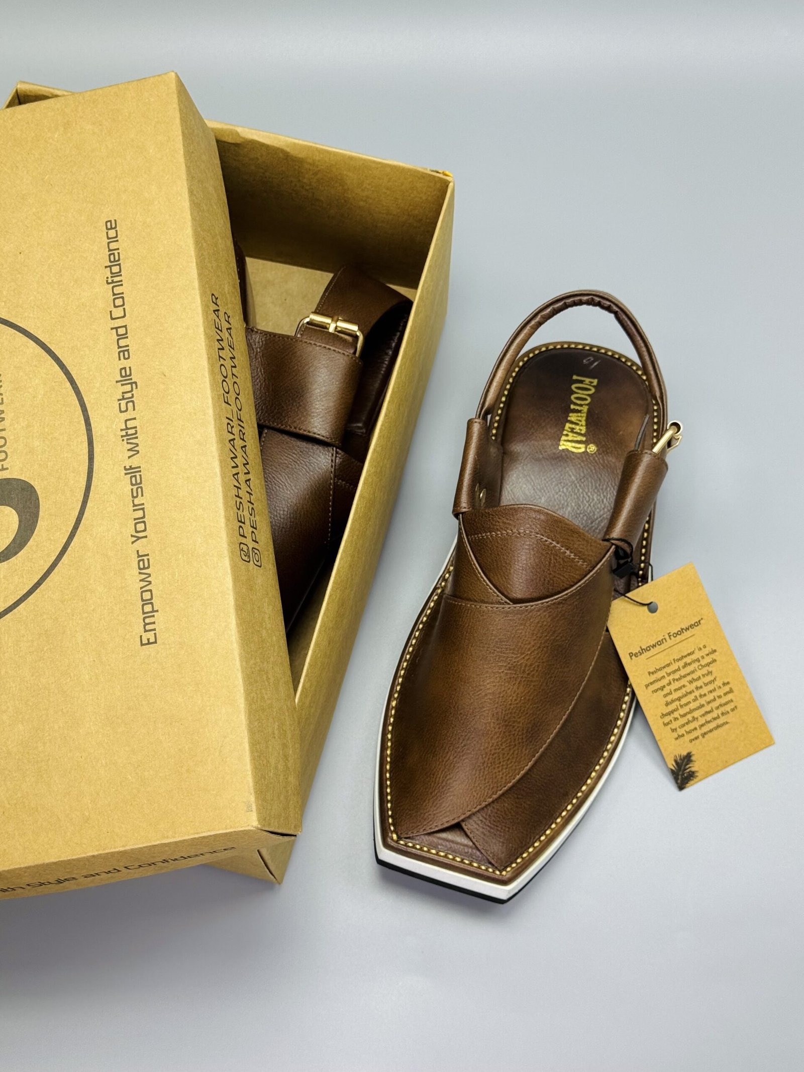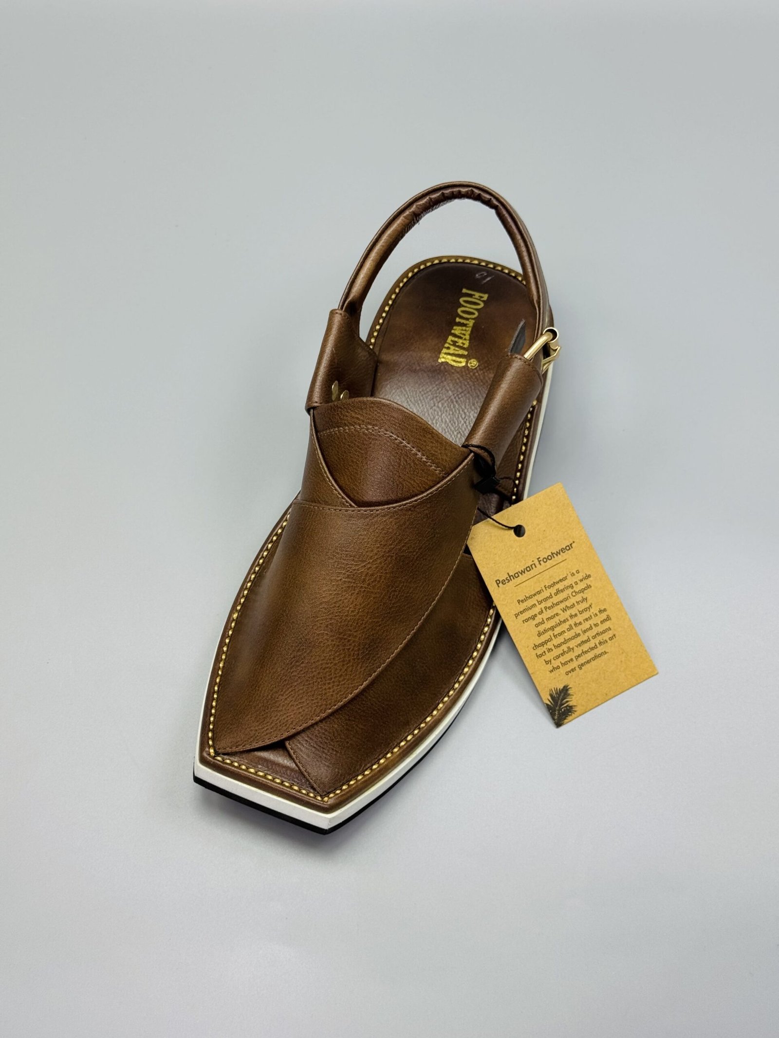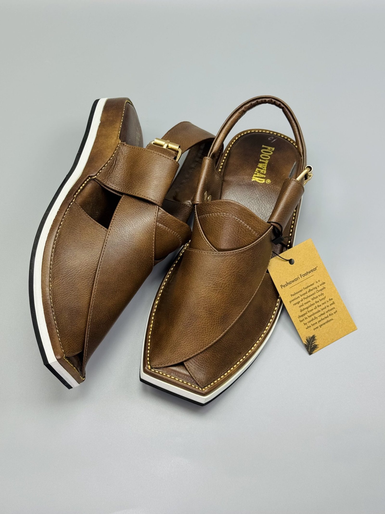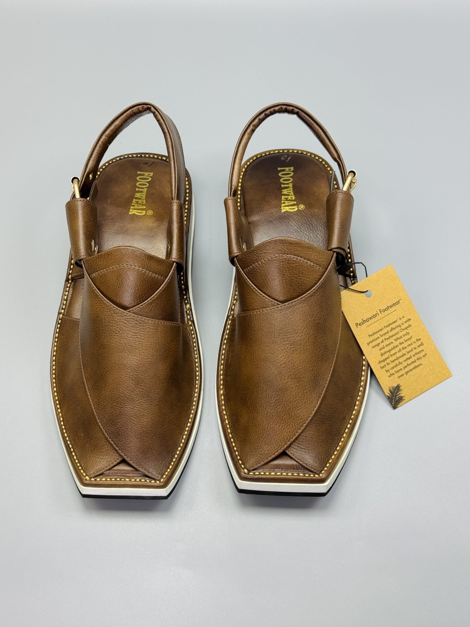 Men’s Peshawari Chappal 004US Experience timeless tradition blended with modern comfort. Our is crafted with pure, high-quality leather is crafted with pure, high-quality leather and finished with a stylish white sole, giving it a unique and elegant look suitable for both traditional and casual wear.